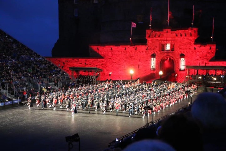 We were privileged to be able to attend one of the evening performances of the Edinburgh Military Tattoo at the Castle. This is my husband’s thing, with all the pomp and ceremony, but there are usually elements that I can enjoy, although I am not a huge fan of bagpipes. I can tolerate them in small doses, but I’m undoubtedly looking for other things to interest me when the massed pipe bands are on.