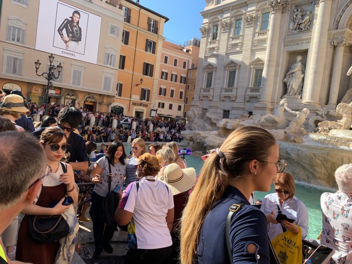 I was overwhelmed with the volume of people, some in smaller groups, some in larger tour groups, come to the fountain, take a quick glance at it and then try to manoeuvre to get themselves in the best photo in front of the water. I witnessed singles and couples with selfie sticks, and those without, trying to either make their arm extend as far as they could or try to enlist the help of complete strangers to take the photo for them. A lot of people spent less than 5 minutes there before moving on to the next venue on the list to see.