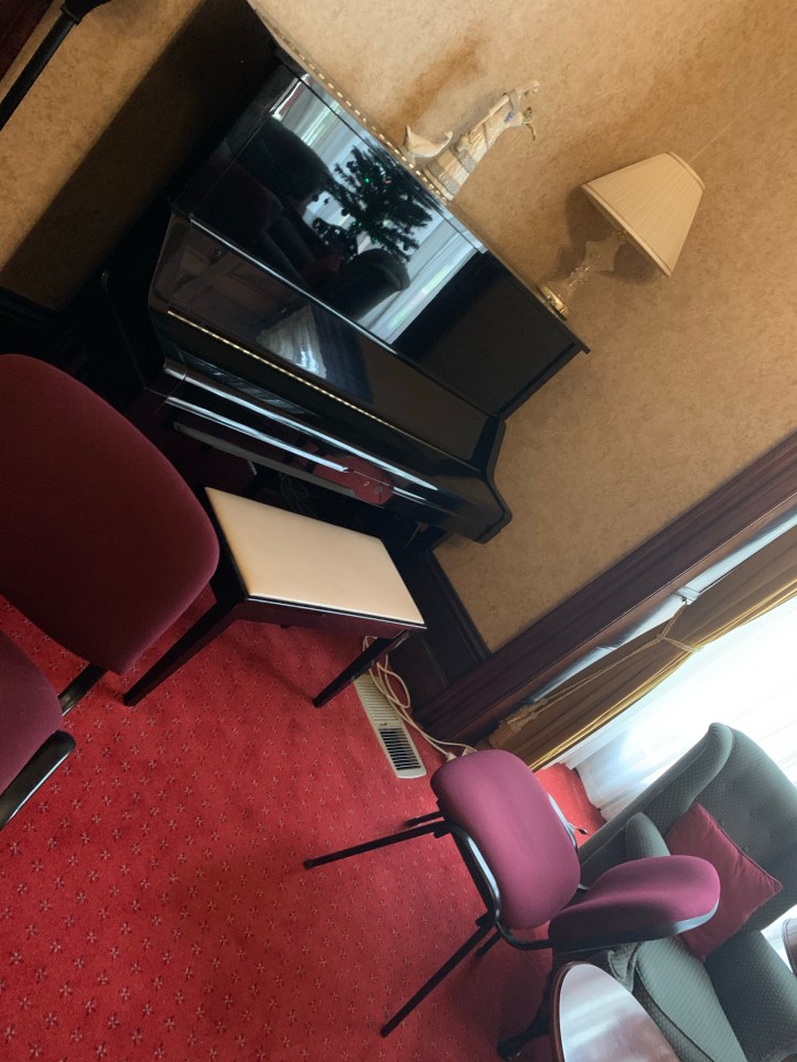 As part of our discussion today we talked about resilience and what brings joy, which can help us face adversity, and discovered that music featured highly for us. So we have escaped to a lounge area where there is an instrument long overdue for tuning, but for our purposes that is not important. We have been singing song after song, covering a variety of vintages, but each with a devotional feel.