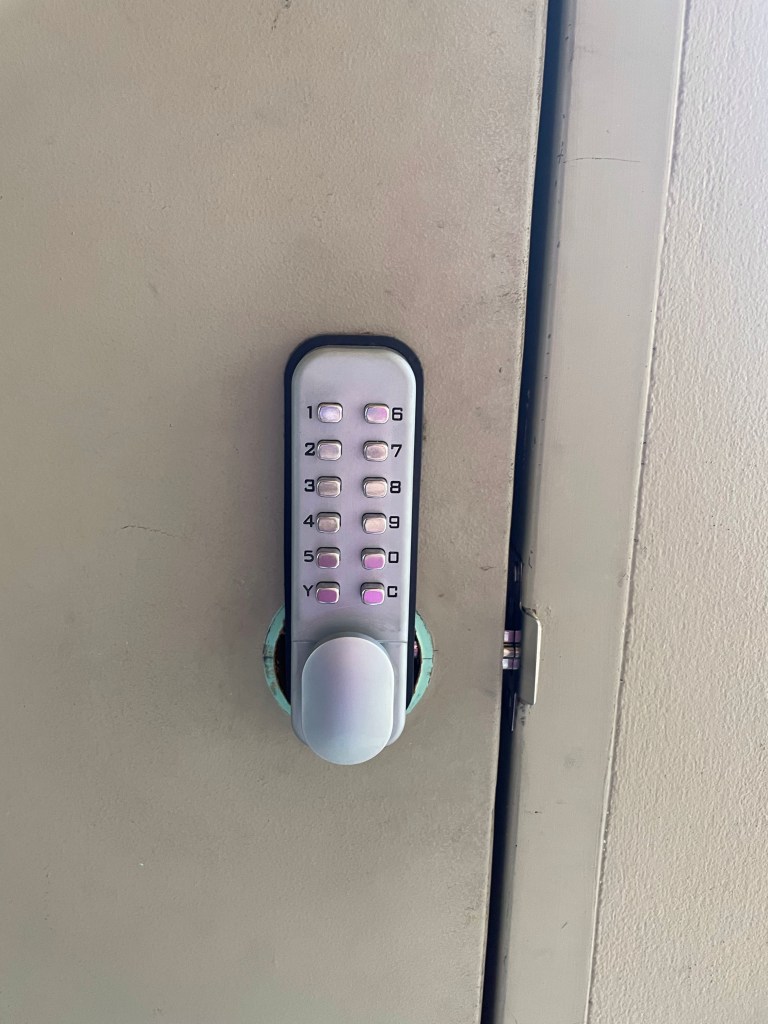 You see, we are given a code for the gate, which is the same for the key cupboard, and so armed with this information I head to the lock on the door and start typing in the combination of numbers that I had just used to gain access to the pedestrian gate. I turned the knob of the lock and the door didn’t open, so I assumed I had hit a wrong number and did it again with no success. Then I did it a third time, turning the knob in the opposite direction but still no access was granted.
