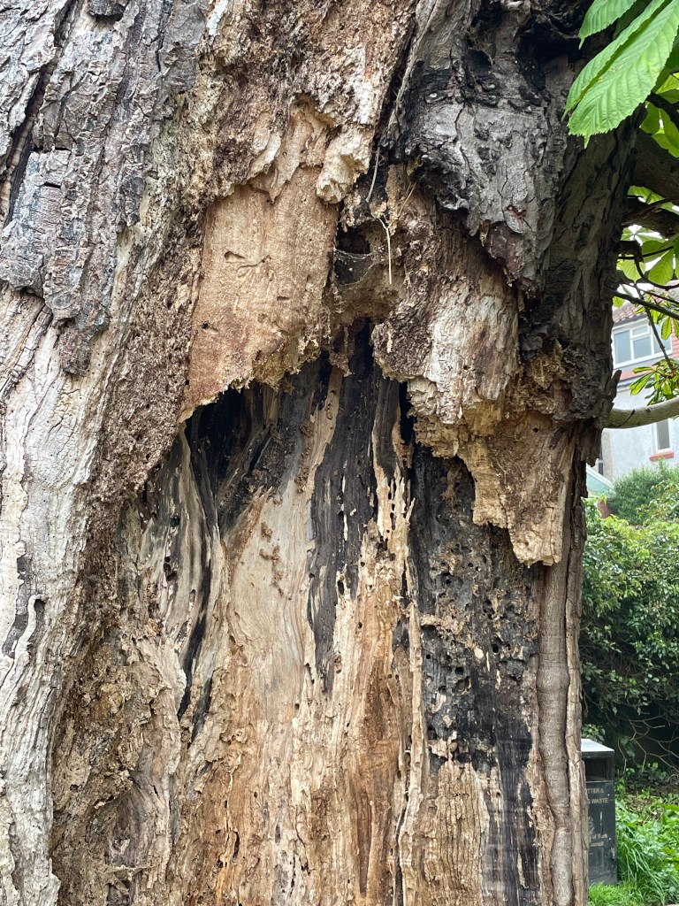 The trunk was sturdy with a number of larger boughs extending from the central, thick base. It’s surface was pitted and marked and had a variety of nooks and cranny’s for creatures to hide in, and while I was gazing at it a tiny robin flew into one such ‘built for safety’ crevices.