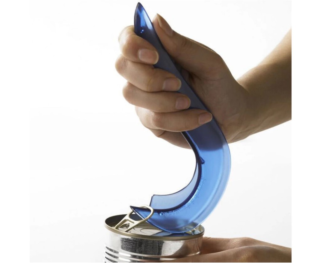 It is called a ‘Jar Key’ and it’s an ingenious item that does away with the recurring need for demonstrations of machismo in opening stubborn jar lids. You only need to position it on the lid and with a gentle lift of the wrist, the seal of the jar is broken which enables the lid to slide open effortlessly.
